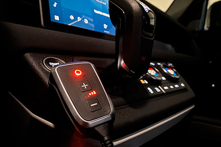 Perfect start through stone and mud in off-road driving: thanks to the PedalBox from DTE Systems. Thanks to the improved throttle response, there are no long thinking seconds when starting off or accelerating. The smart accelerator tuning pulls the Land Rover Defender forward with power for a fast, dynamic start and overtaking. The PedalBox is connected to the Land Rover Defender accelerator pedal in just three steps and is ready to go. You can switch between the different programs to set the response behavior to suit your personal needs. With the PedalBox, choose between the Sport, Sport-Plus or City program and benefit from pure driving pleasure through modern accelerator tuning. Using the plus and minus buttons, you can fine-tune the accelerator pedal tuning once again.